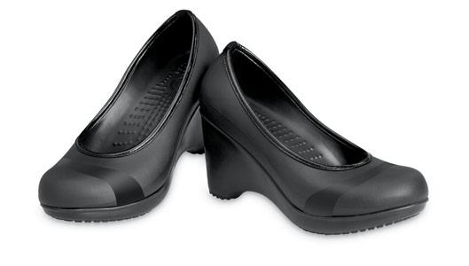 • O sapato fechado de salto cunha é um modelo clássico e chique;
